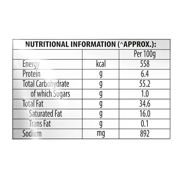 Ingredients:Potato, Edible Vegetable Oil (Palmolein), Iodised Salt (1.5%).
